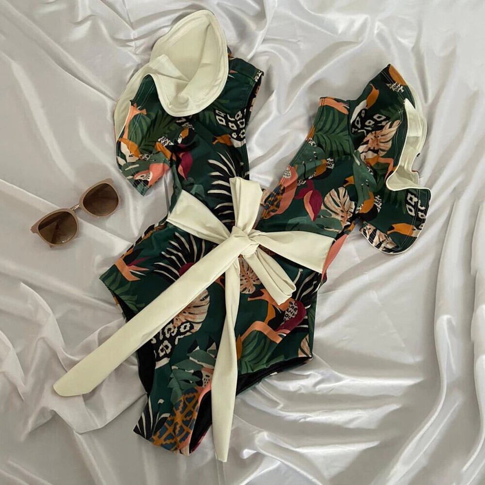 送料無料 ワンピース水着2022セクシー水着女性水着肩フリル水着ビーチウェアレースアップモノキニ AE3553340806986009