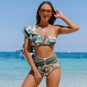 送料無料 ウエストビキニセットワンショルダーフリルセクシープリント水着ツーピース水着女性2022水着ビーチウェア AE3553392222821227