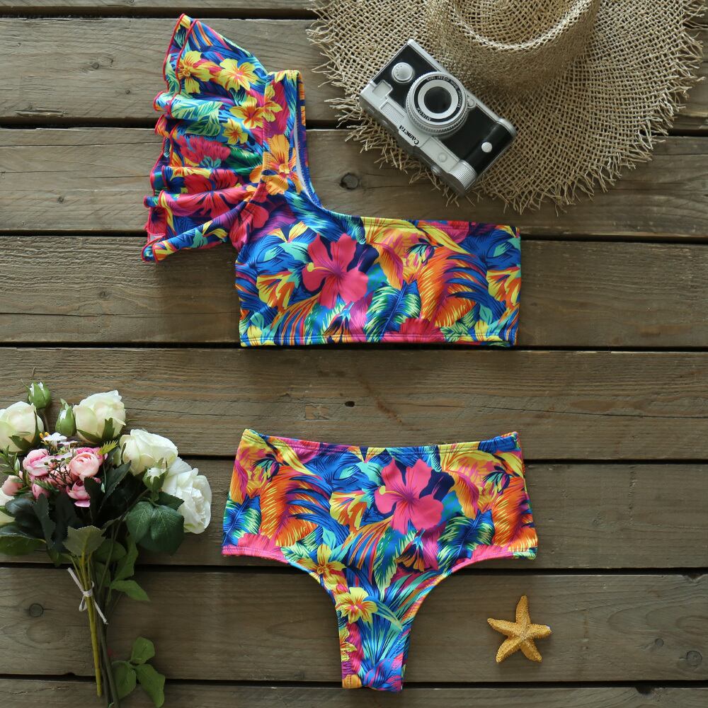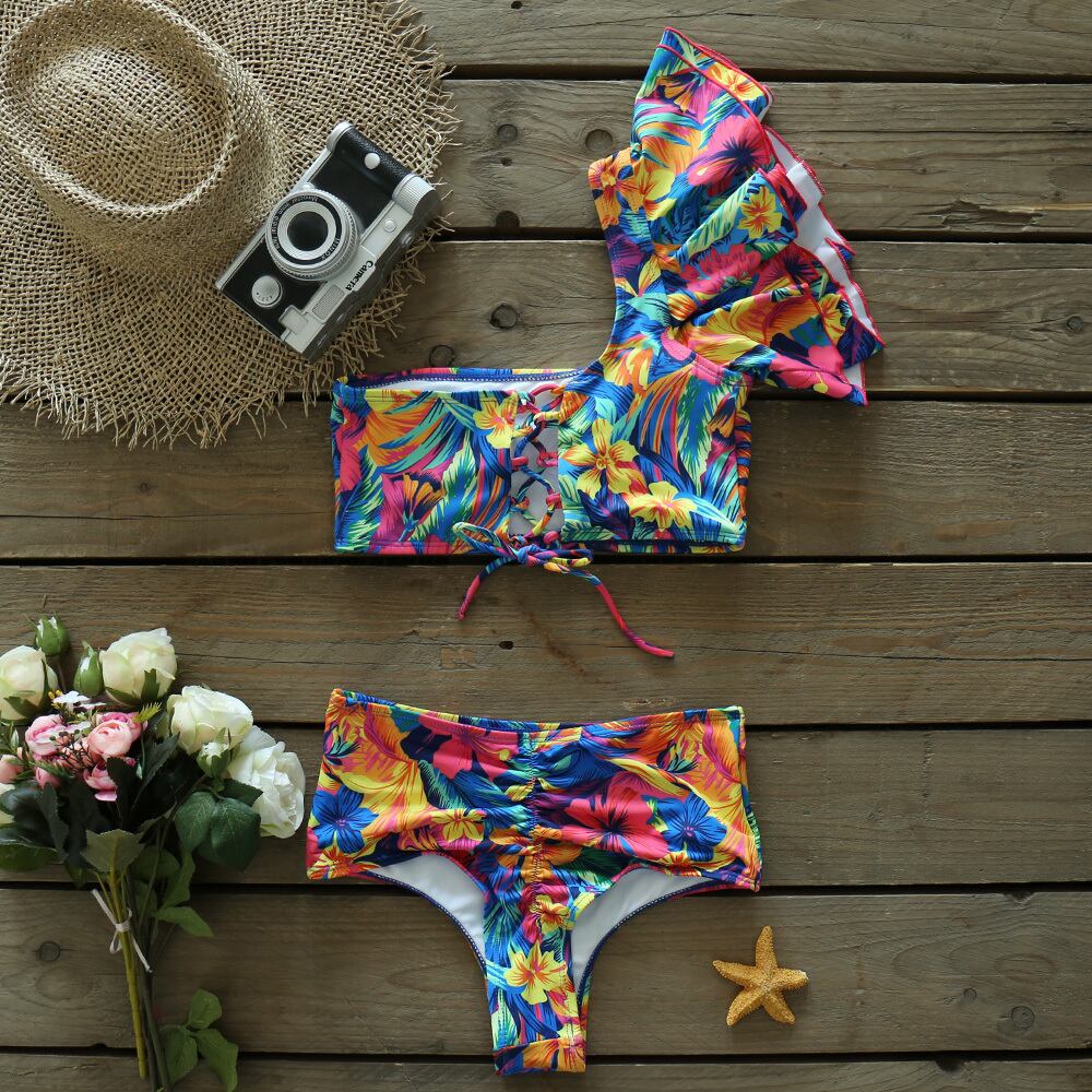 送料無料 2020セクシーワンショルダービキニ女性水着フリル水着ウエスト水着ビーチウェアビキニ AE3553383193658045
