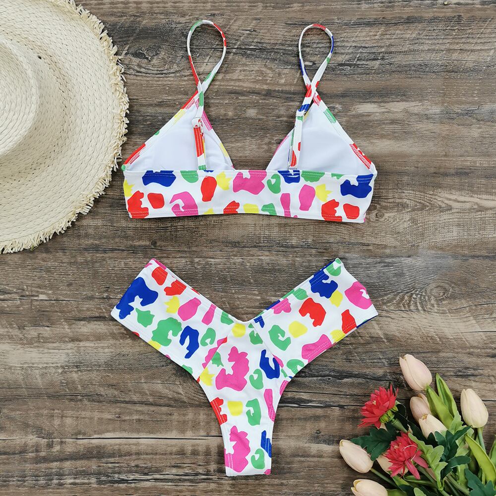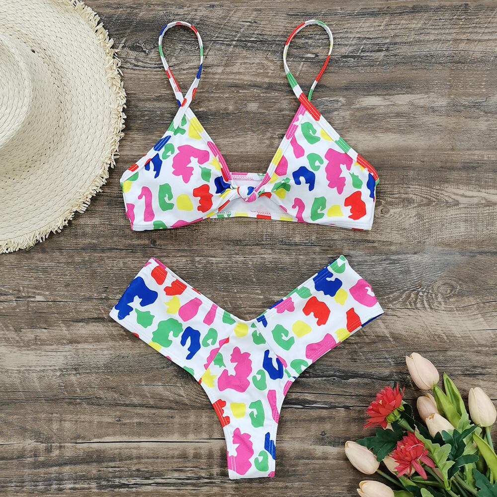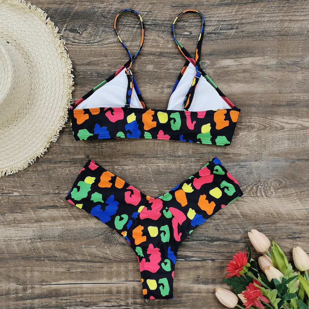 送料無料 2021セクシーなローウエストビキニセットヒョウ柄フローラルスプライスプッシュアップ水着女性ビーチウェア水着水着ビキニ 花柄 AE3553343282672707