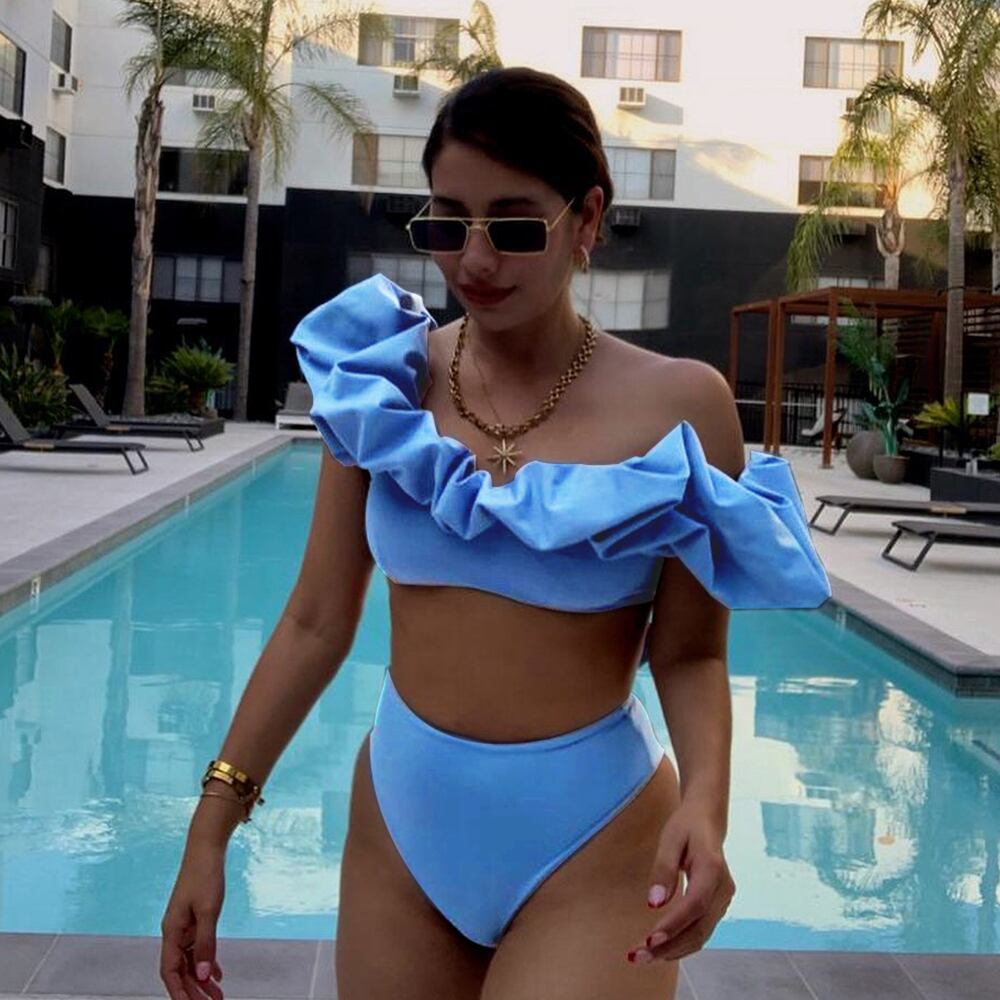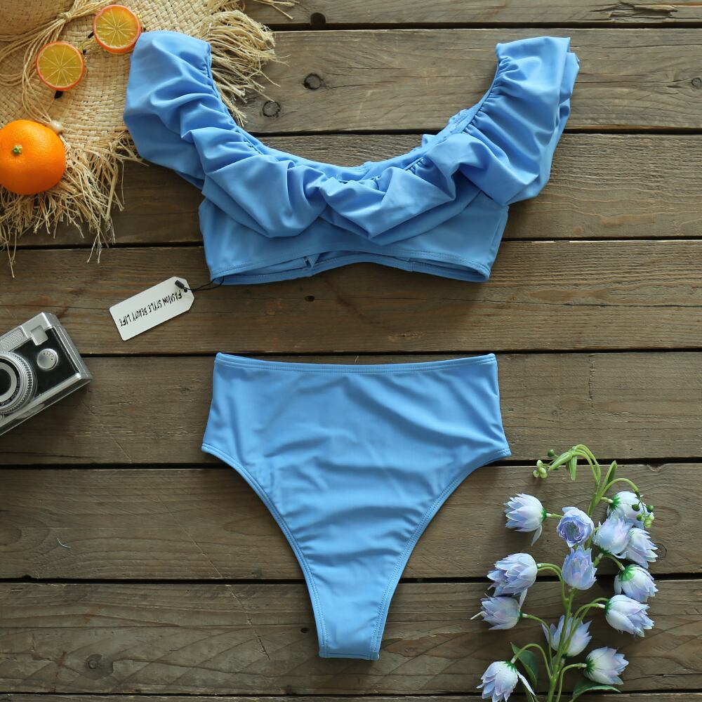 送料無料 2021セクシーブルービキニ水着女性バンドー水着ウエストビキニセット水着水着 AE3553371480965648