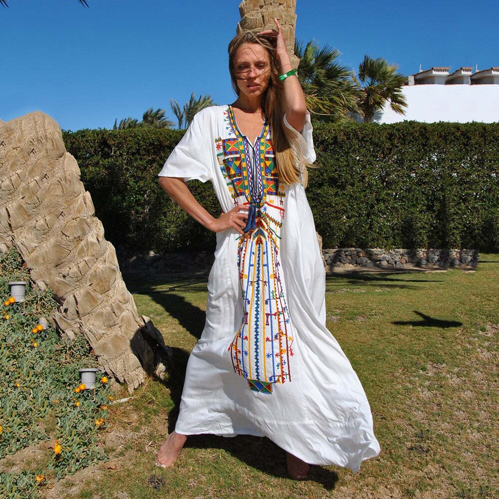 送料無料 2021ビキニカバーアップボヘミアンレトロ刺繍半袖マキシドレス女性ビーチウェアヴィンテージロングカフタン ショート レッド ハーフスリーブ ビンテージ AE3553314262359991