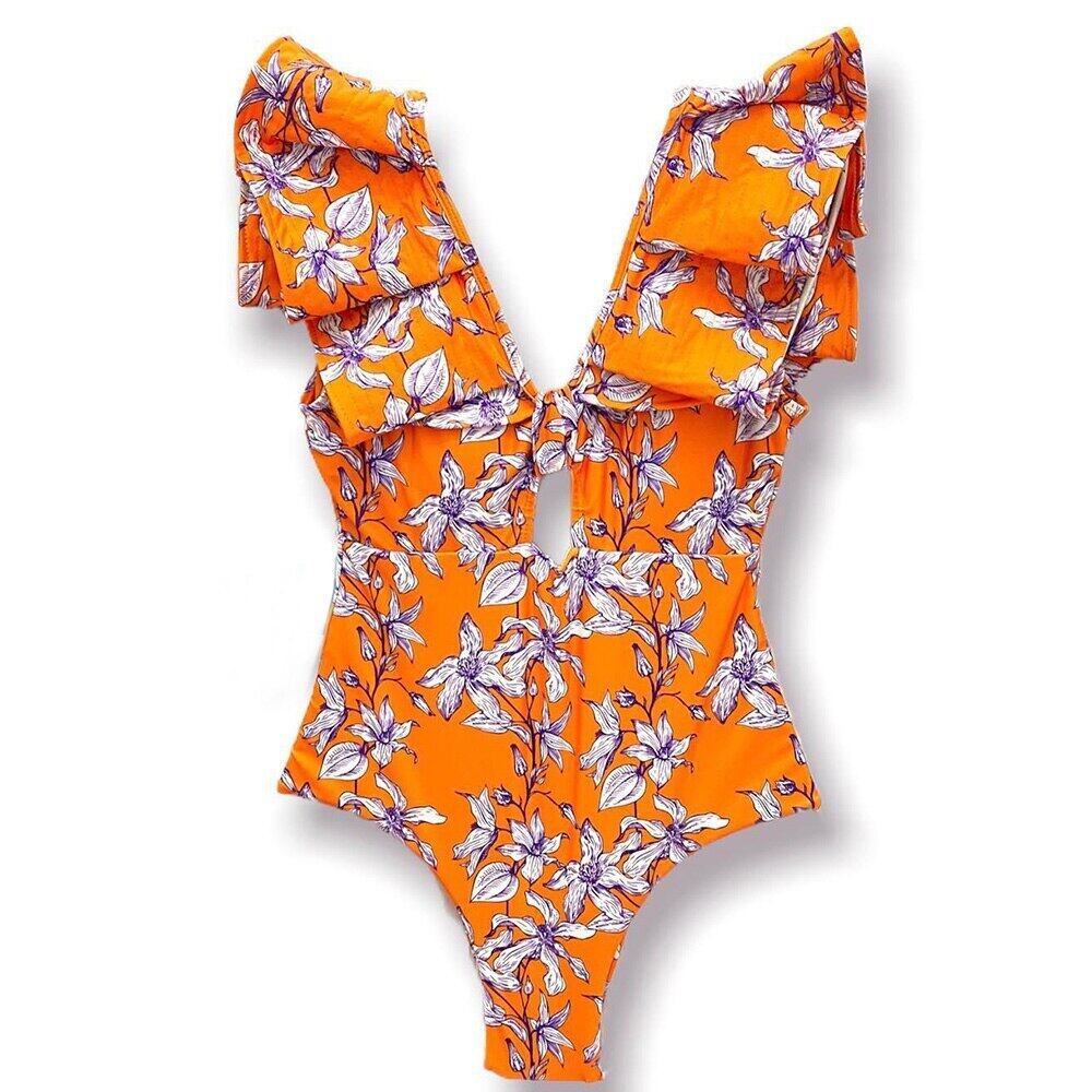 送料無料 プリントVネックワンピース水着2022セクシー水着女性水着ショルダーフリル水着ビーチウェアモノキニ AE3553372174746458
