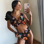 送料無料 2022セクシーアイズプリントビキニ水着女性水着フリルビキニセットウエスト水着水着 AE3553340851391079
