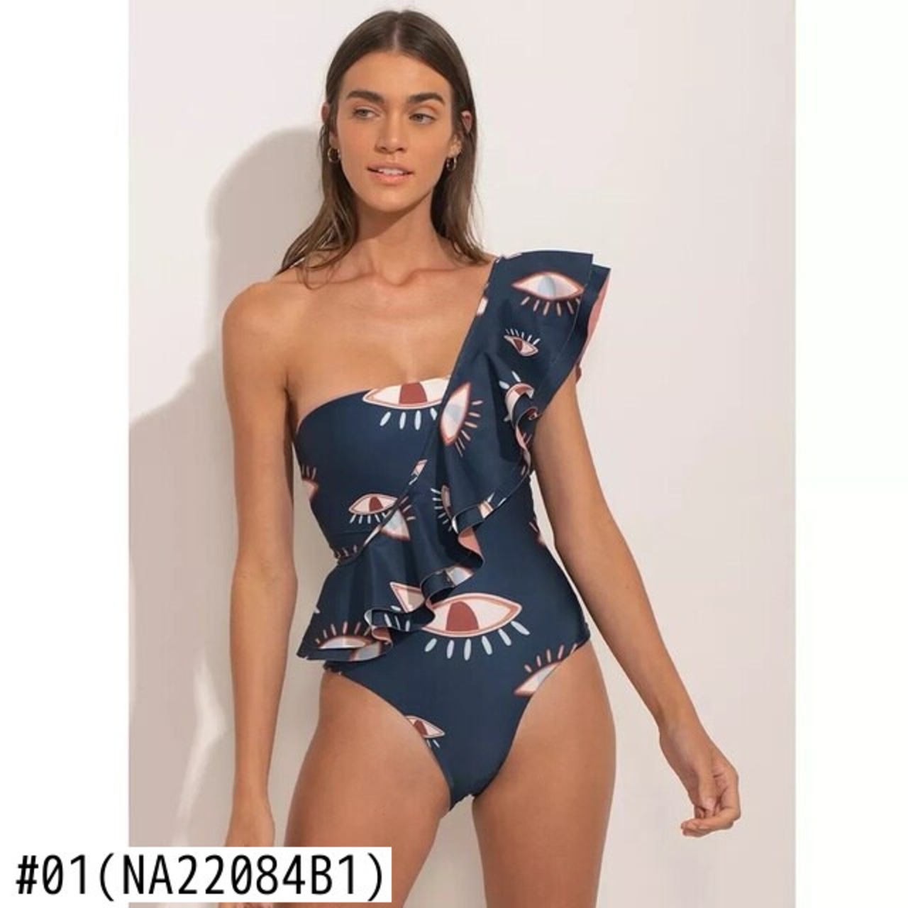送料無料 2022ワンピース水着アイズプリントワンピースフリル水着女性プッシュアップビーチウェアバックレスモノキニセクシー水着 AE355335358101544