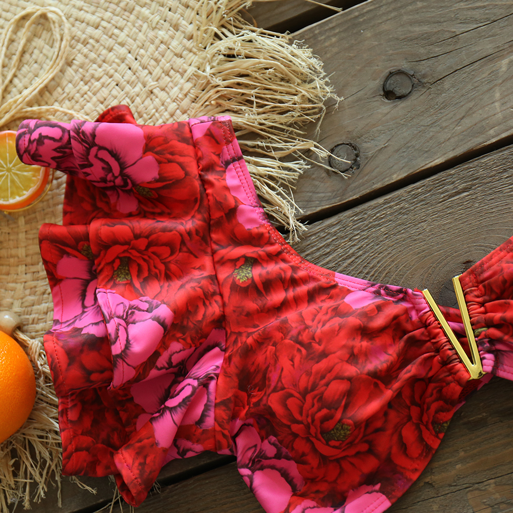 送料無料 ウエストビキニセット2021セクシーワンショルダーフリル水着女性水着フローラルビーチウェア水着ビキニ女性 花柄 AE3553347652111974