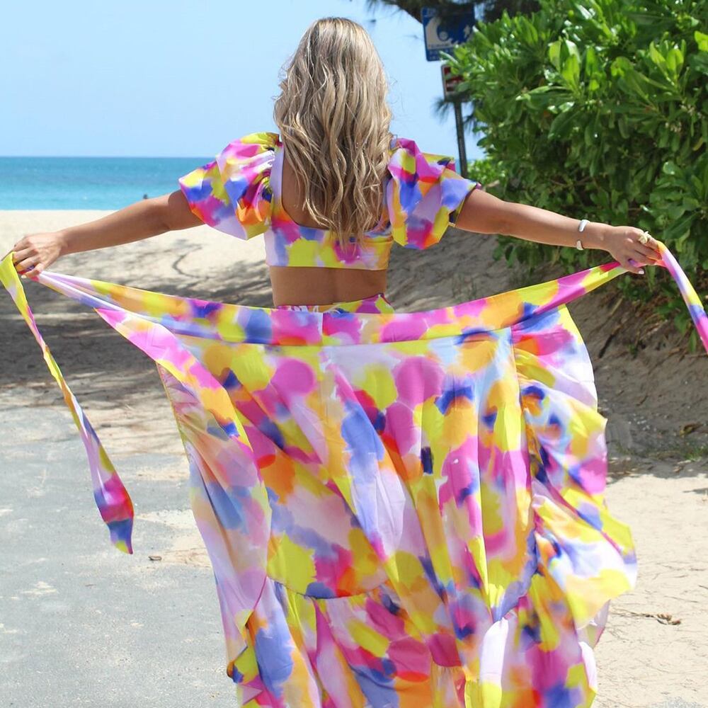 送料無料 2021セクシーなフリルビキニセットとカバーアップウエスト水着女性水着プッシュアップ水着ビーチウェアビキニ AE3553357245369743