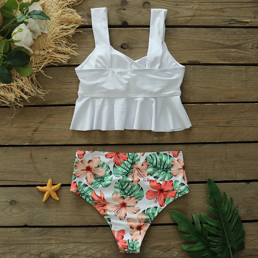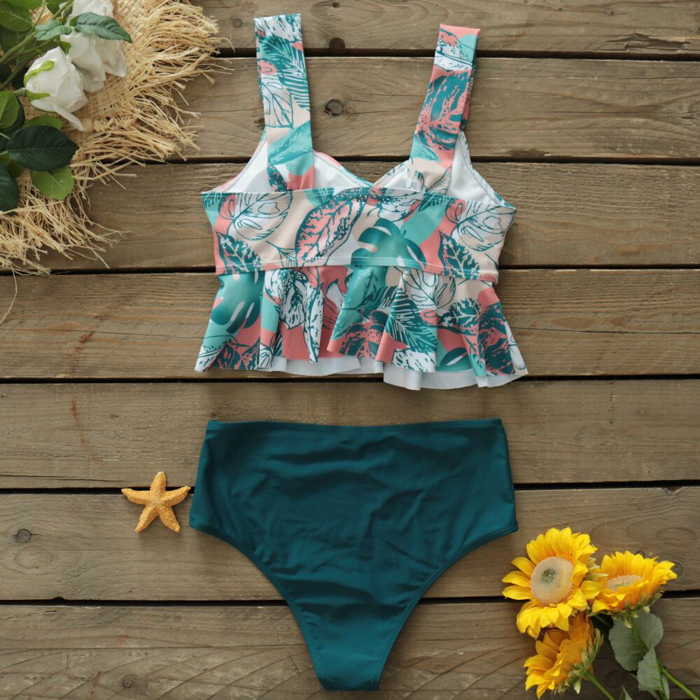 送料無料 フリル水着セクシーな停止水着女性プリントビキニオフショルダービキニセットプラスサイズ水着 大きめサイズ AE3553341888005312