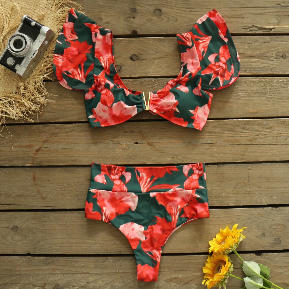 送料無料 2021セクシーウエストビキニセット水着女性水着プッシュアッププリントブラジルの水着ビーチウェア水泳ビキニ AE3553353157335932