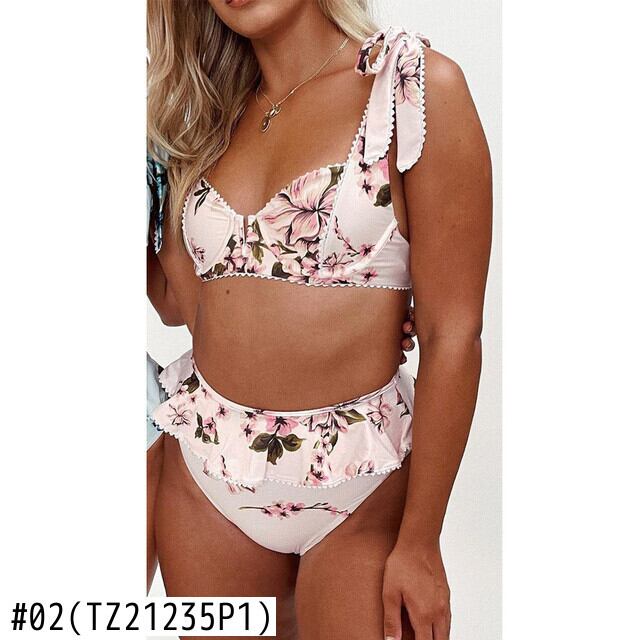 送料無料 2021セクシービキニセットウエストプリントフローラルプッシュアップ水着ストラップ付き水着女性水着サマービーチウェアビキニ 夏物 花柄 AE3553367074812529