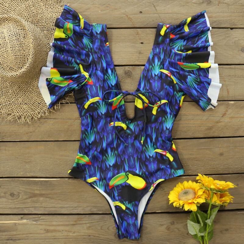 送料無料 2020セクシーフリルレディース水着ワンピース水着プッシュアップモノキニボディスーツプリント水着水着ビーチウェアサマー 夏物 AE3553373794103937