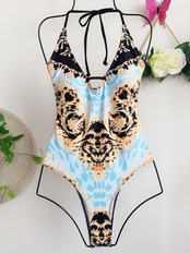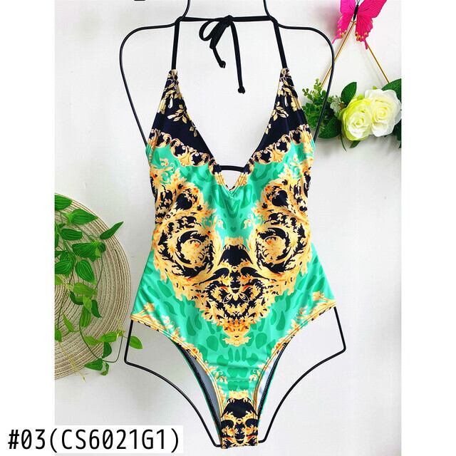 送料無料 2021セクシーなレースアップモノキニ女性水着ワンピース水着プリントカットバザー水着スイムレディ AE3553368406256006