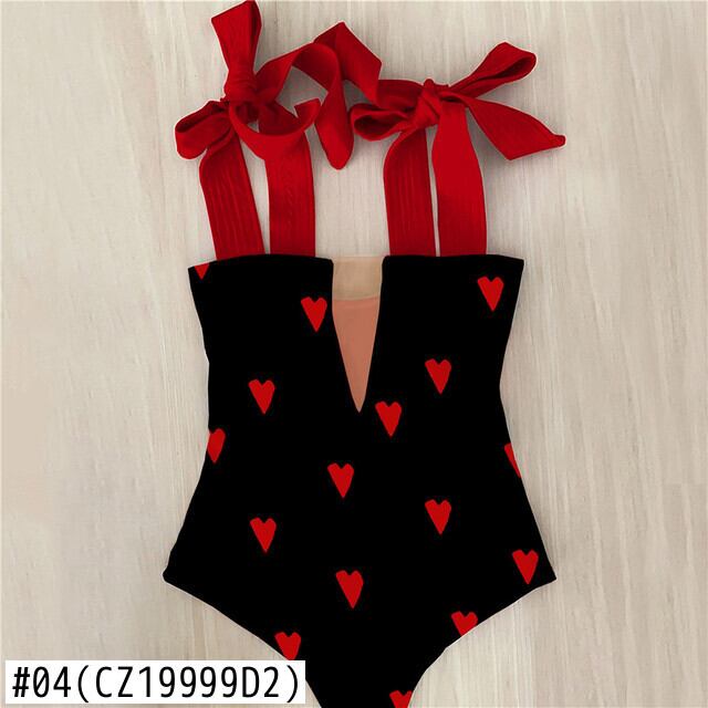 送料無料 2021セクシーワンピース水着ショルダーストラップ水着ハートプリント水着女性バックレス水着ビーチウェアモノキニ AE3553343587036720