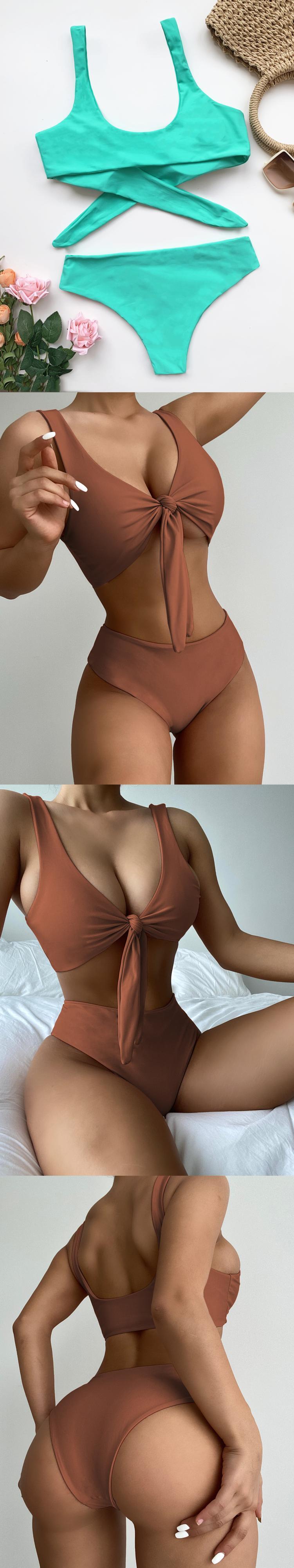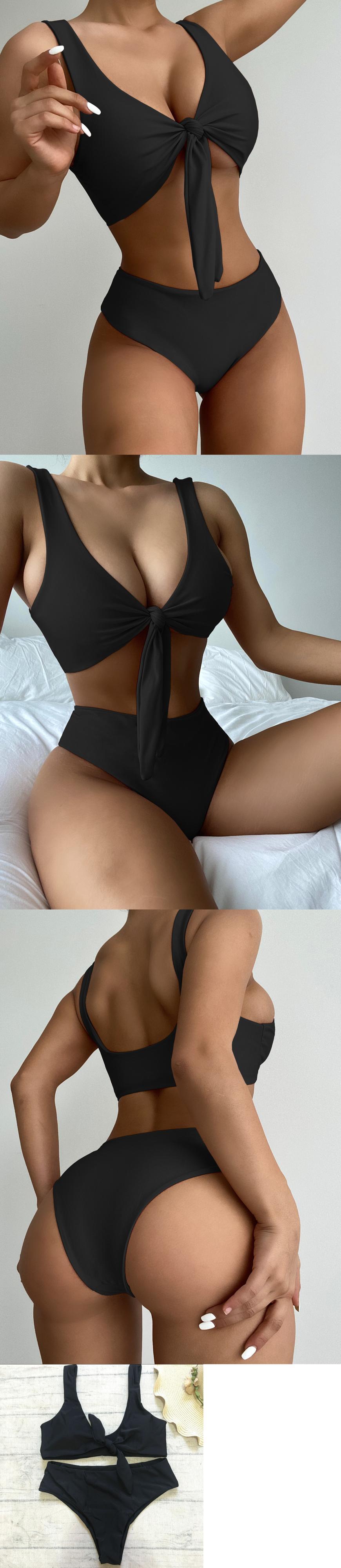 送料無料 女性のセクシーなビキニセット結び目のあるパッド入りのひも水着ワイヤー無料2ピース水着夏の水泳水着 サマー 夏物 AE3553367956553741
