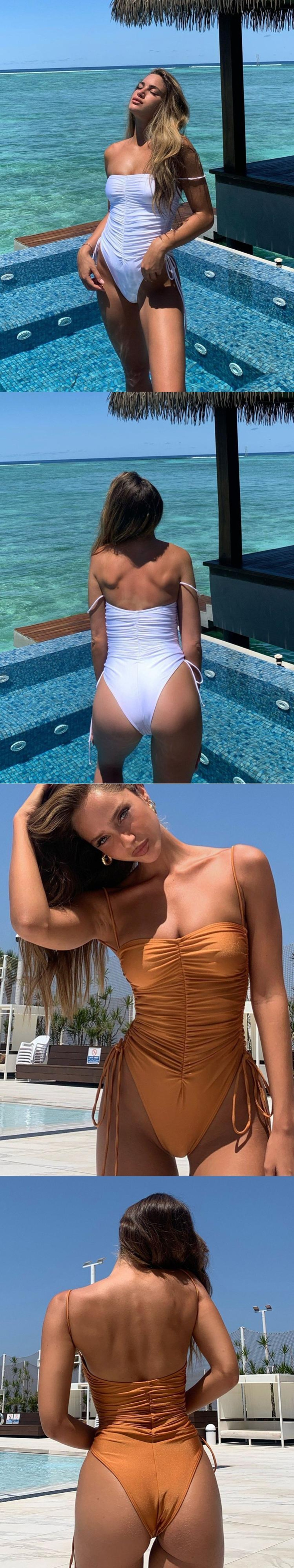 送料無料 BIQIUYYIセクシーバンドーワンピース水着レディースサマーソリッドモノキニボディスーツ巾着水着カットビキニ 夏物 ソリッドカラー AE333221123337132559