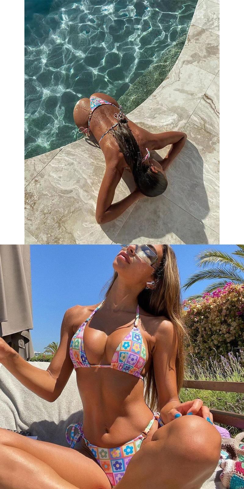 送料無料 セクシーなプリントビキニセットブラジルの水着サマーホルタービーチウェアトライアングルプッシュアップ水着Tバックビキニ 夏物 AE333221161319404858
