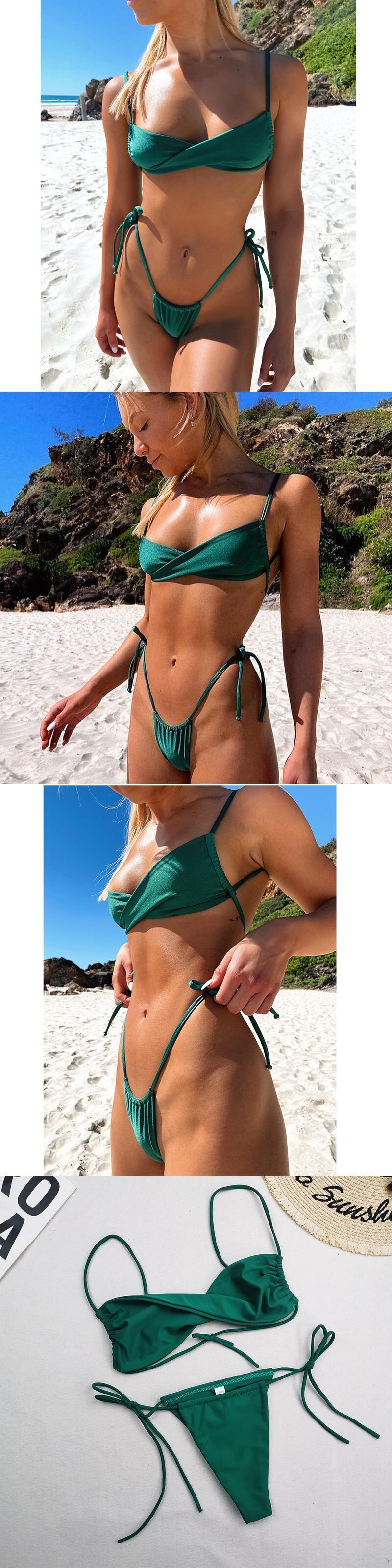 送料無料 BIQIUYYIブラジルクロスバンドービキニサマーセクシーミニTバック水着女性ビーチウェアバックレス水着-胸パッドなし 夏物 AE333221166682128349