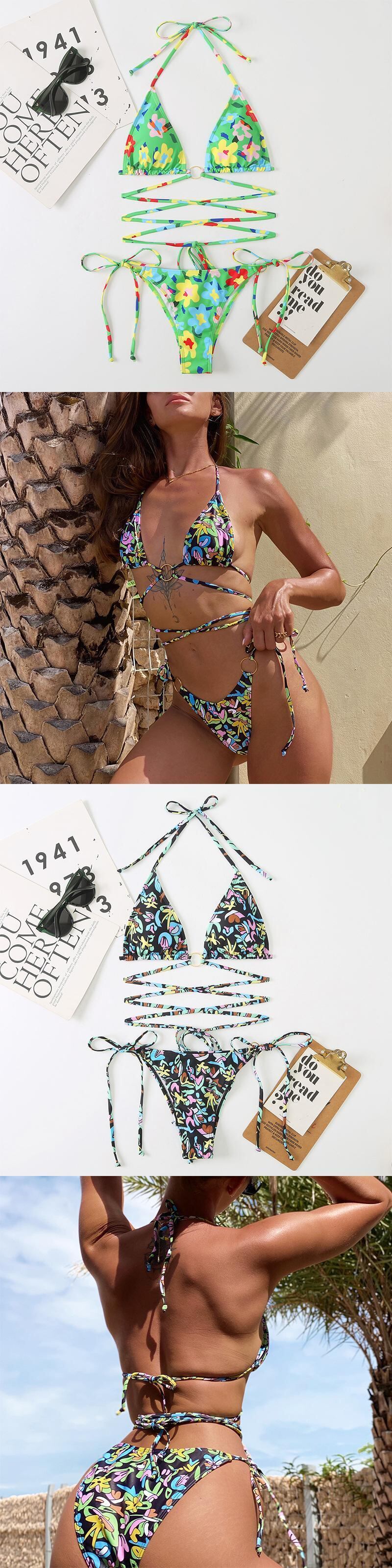 送料無料 BIQIUYYIセクシーミニTバックビキニセットサマープッシュアップ水着女性ストリング包帯水着水着フローラルプリントビキニ 夏物 花柄 AE333221143143798344