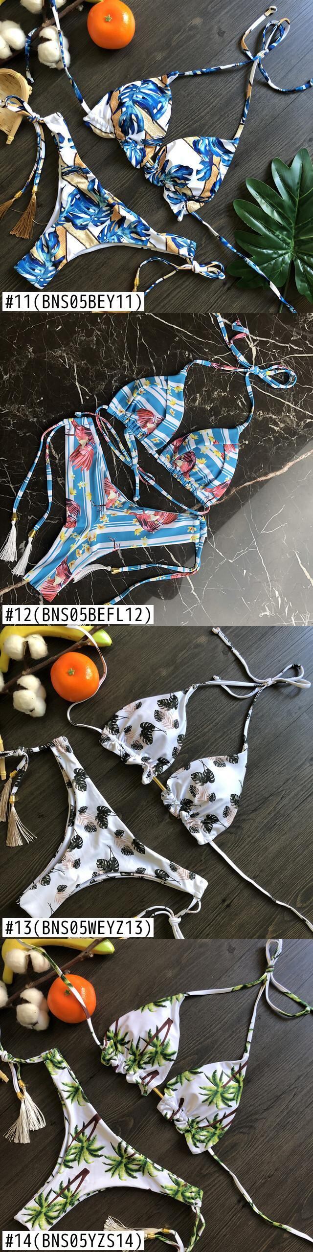 送料無料 セクシートライアングルプッシュアップビキニセット水着サマープリント水着Tel水着ブラジリアンTバックビキニバックレスビーチウェア 夏物 AE333221190790932428