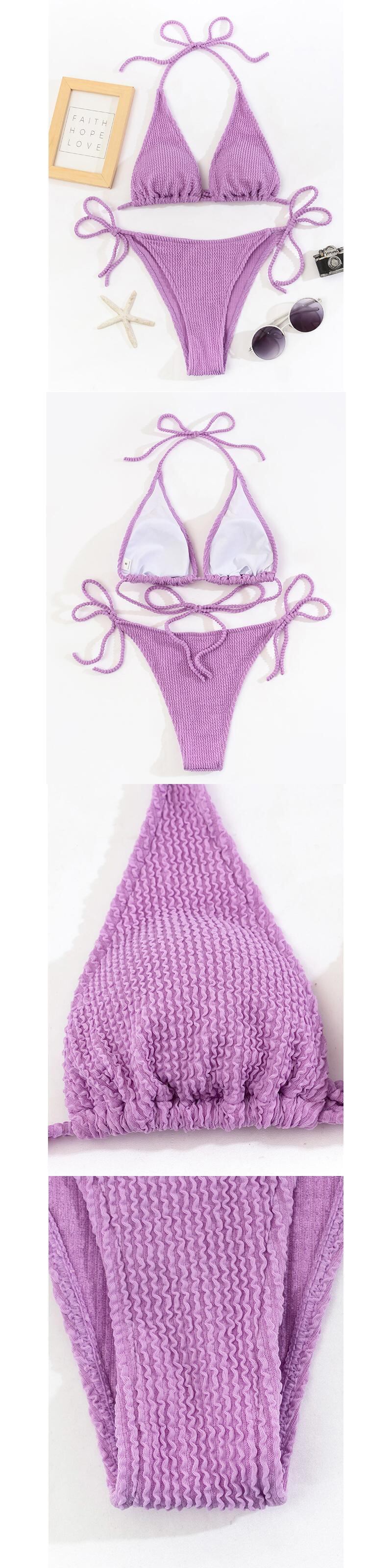 送料無料 リブ編みのセクシーなトライアングルプッシュアップビキニサマーミニTバック水着女性水着ツーピースセットバンデージホルター水着 夏物 AE333221142655481625