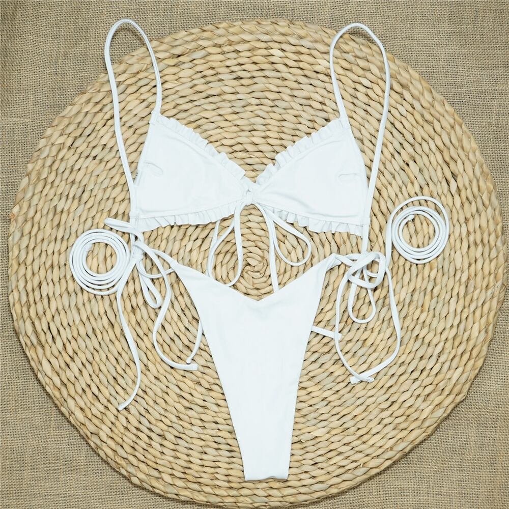 送料無料 ビキニ2021セクシーなソリッド水着女性水着プッシュアップビキニセットバンデージ水着サマービーチウェアローウエスト水着 夏物 ソリッドカラー AE36655561231500688