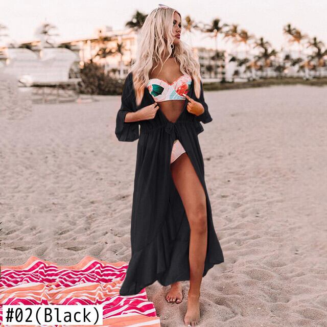 送料無料 シフォンビーチカバーアップ女性ビキニカバーアップロングビーチドレスカーディガンチュニック2021セクシー水着カバーアップシーサイドバケーションスカート AE36655518041538046