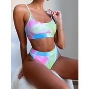 送料無料 タイダイプリントビキニ2021セクシーウエスト水着水着女性ツーピースビキニセット水着ビーチウェア水着スイムレディ AE36655573425629442