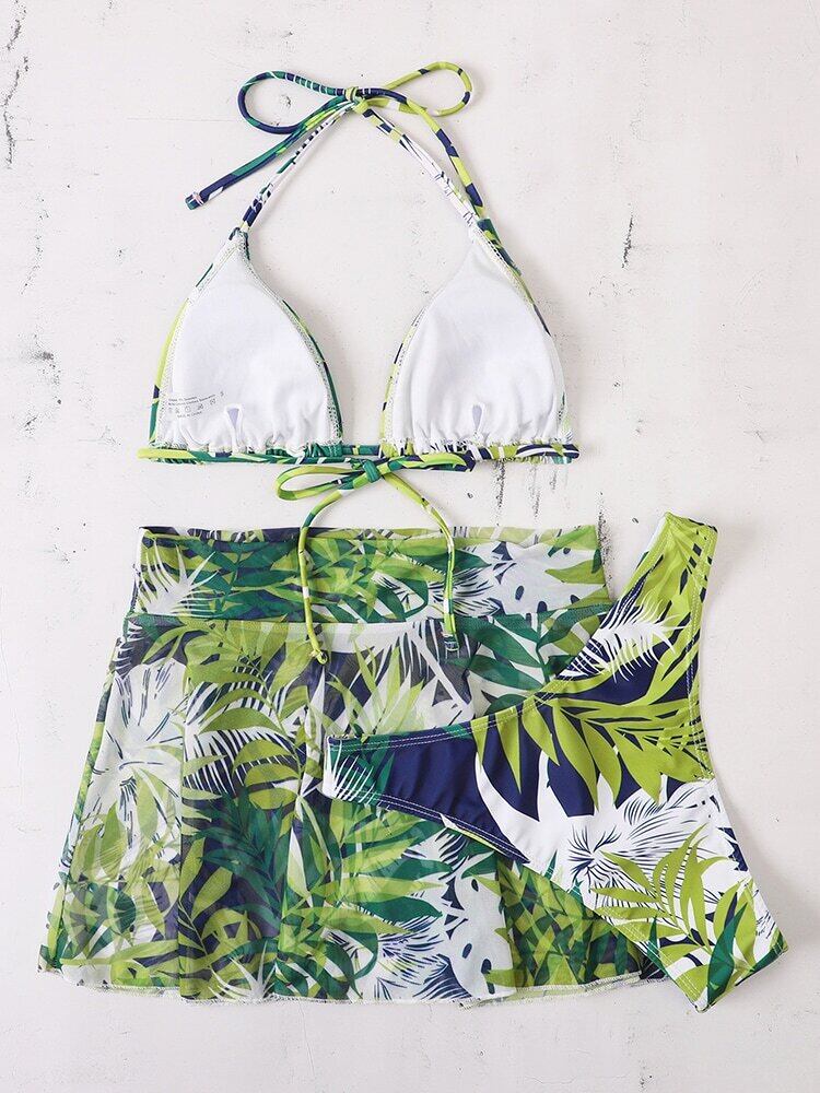 送料無料 2022セクシーリーフプリントビキニスリーピース水着女性水着ビキニセットビーチスカート水着水着レディー AE36655524469836935