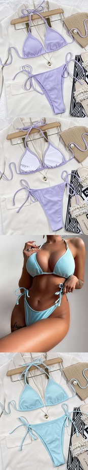 送料無料 2022セクシーなソリッドビキニ女性水着ホルターストラップ付き水着リブ付きビキニセット入浴水着サマービーチウェア 夏物 ソリッドカラー AE36655587366520497