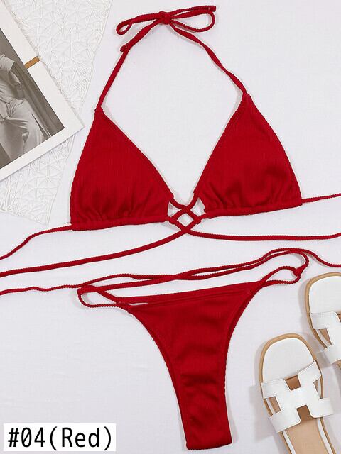 送料無料 セクシーなホルターリブビキニ女性2022水着水着2ピースビキニセットバンデージ水着ビーチウェア水着スイムレディ AE36655585426153622