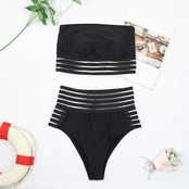 送料無料 セクシーなストラップレスビキニ女性2021メッシュパッチワーク水着ウエスト水着ツーピースビキニセット入浴水着 AE36655567497926847