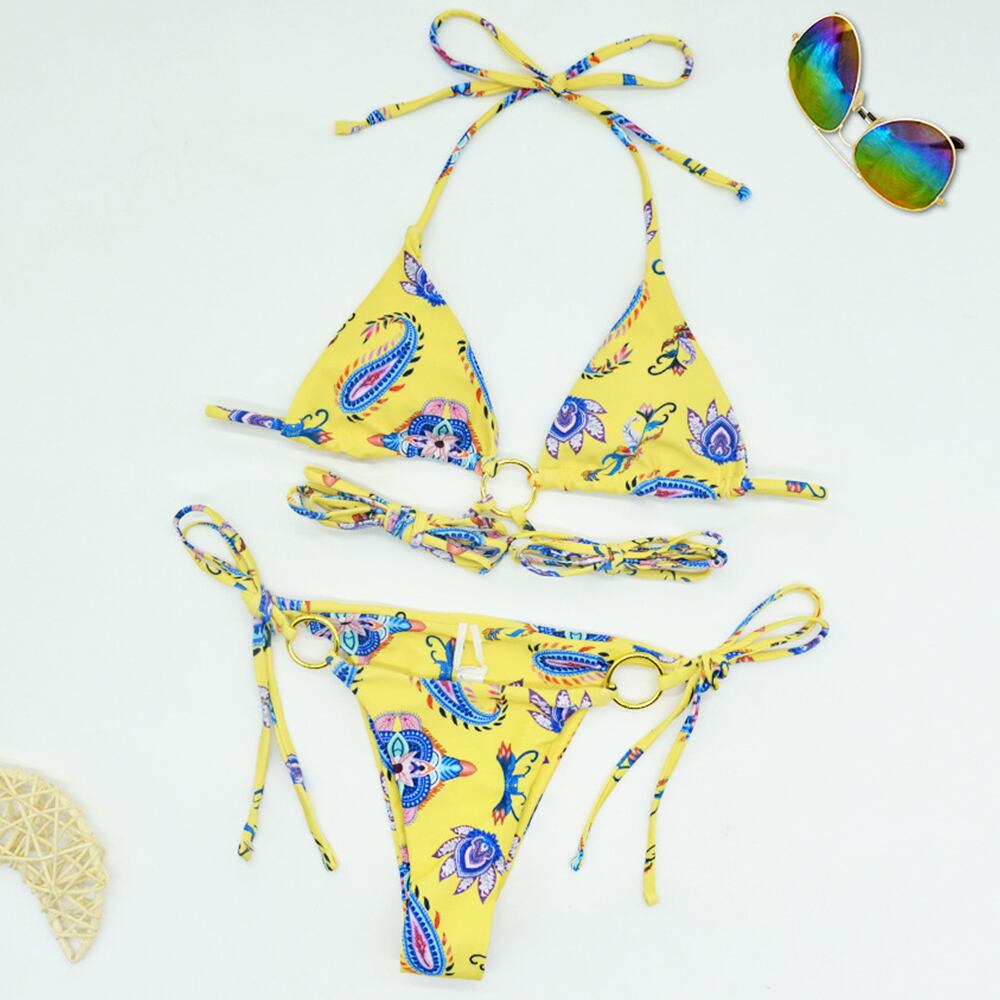 送料無料 プリントビキニ2021セクシーな水着女性ホルタープッシュアップ水着ブラジルのビキニセット入浴水着サマービーチウェア 夏物 AE36655562490827959