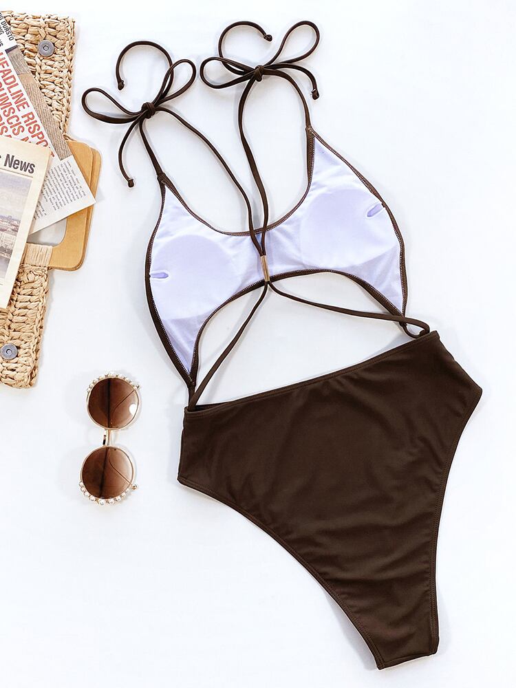 送料無料 2022セクシーな中空アウトワンピース水着女性ストラップ水着プッシュアップモノキニソリッド水着サマービーチウェアスイム 夏物 ソリッドカラー AE36655552894117945