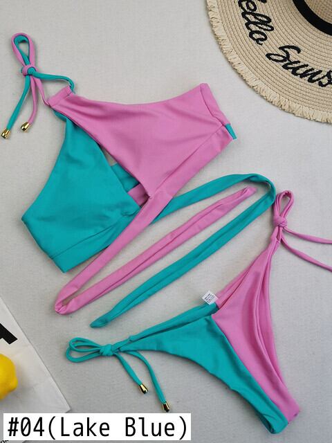 送料無料 2022セクシーホルターストラップビキニコントラストカラー水着女性水着ブラジルビキニセット入浴者水着水泳 AE36655560824760330