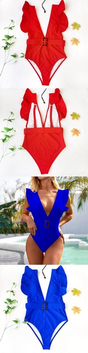 送料無料 2021セクシーワンピース水着女性フリル水着ソリッドボディスーツ水着プッシュアップモノキニ水着サマービーチウェア 夏物 ソリッドカラー AE3665554737053024