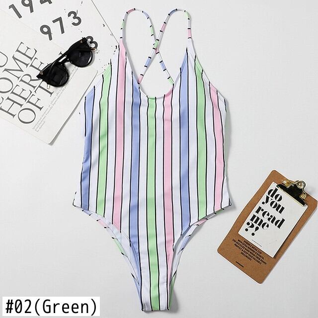 送料無料 ストライププリントワンピース水着2021セクシークロスバックレス水着女性プッシュアップモノキニ水着サマービーチウェアバザー 夏物 AE36655527887520928