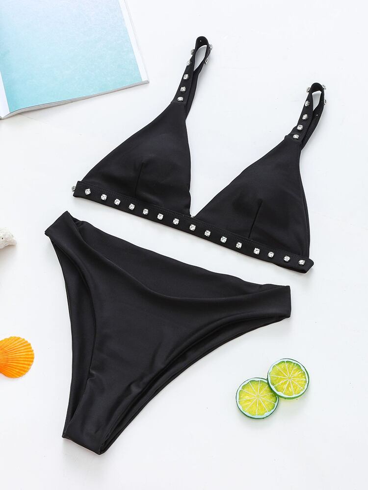送料無料 2022セクシーパールラインストーンダイヤモンドビキニディープVネック水着女性水着水着サマービーチウェア入浴者 夏物 真珠 AE36655529678332325