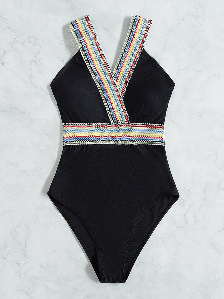 送料無料 2022セクシーパッチワーク水着女性ワンピース水着ディープVボディスーツ水着サマービーチウェアモノキニ水着 夏物 AE3665558724415736