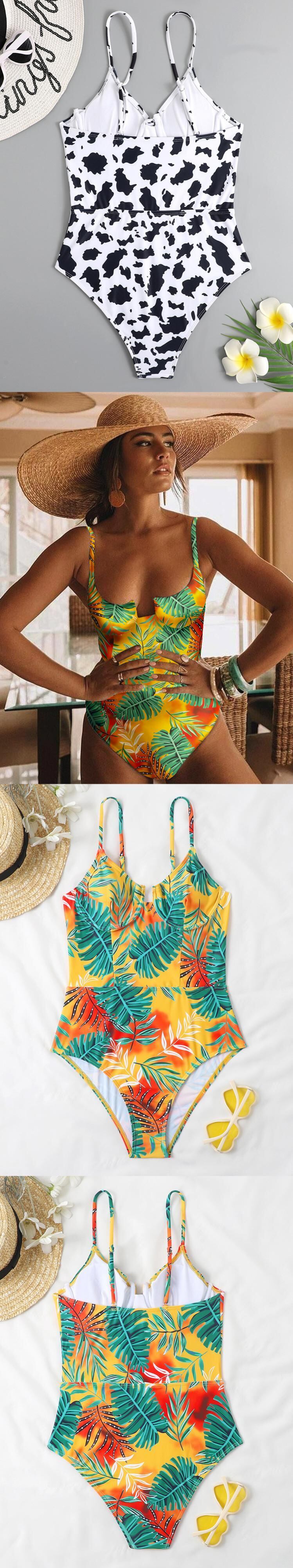 送料無料 2022セクシーリーフプリントワンピース水着プラスサイズ水着女性プッシュアップモノキニ水着水着サマービーチウェアXXL 大きめサイズ 夏物 AE36655555187435115