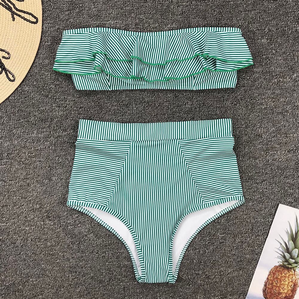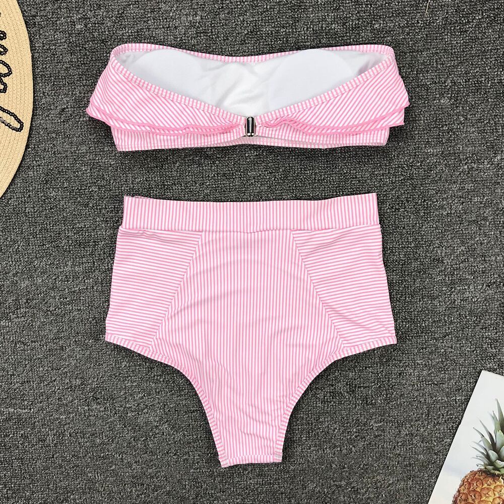 送料無料 フリルフリルウエストビキニセット2022セクシーストライププリント水着レディース水着ツーピースビキニセット水着 AE36655595090255780