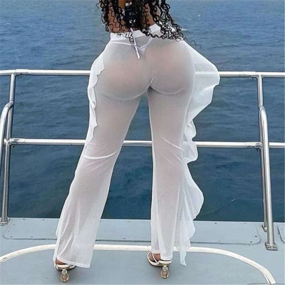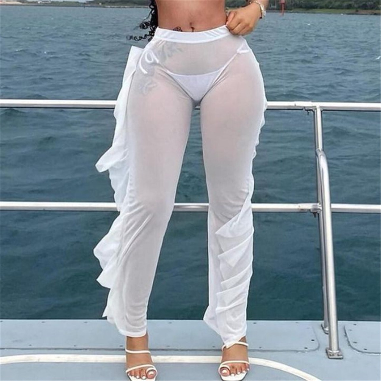 送料無料 フリルメッシュビーチパンツ女性2022セクシーな透明なビーチパンツ夏のカバーアップビキニカバーアップアウター サマー 夏物 AE36655515022777643