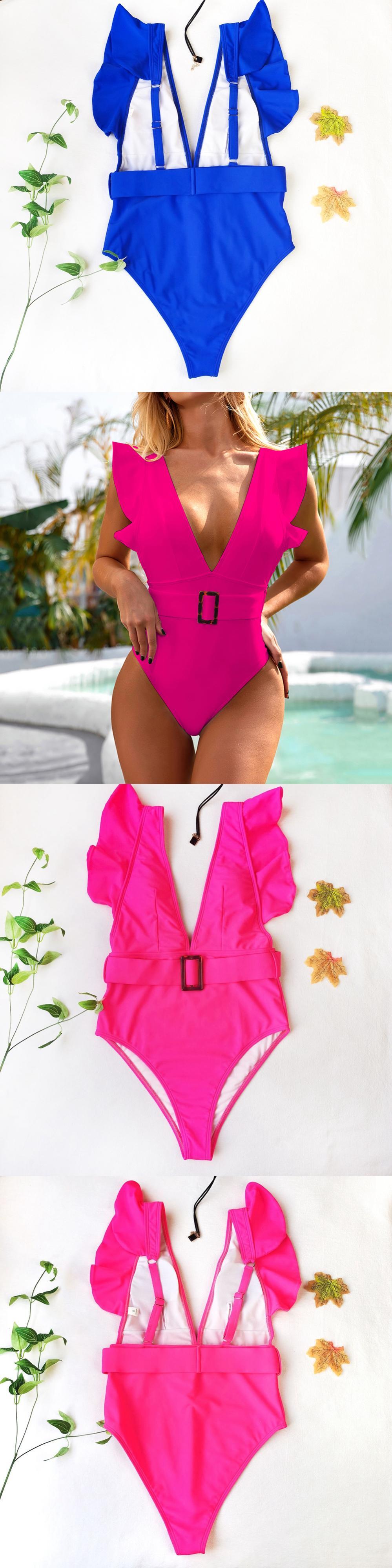 送料無料 2021セクシーワンピース水着女性フリル水着ソリッドボディスーツ水着プッシュアップモノキニ水着サマービーチウェア 夏物 ソリッドカラー AE36655521091330512