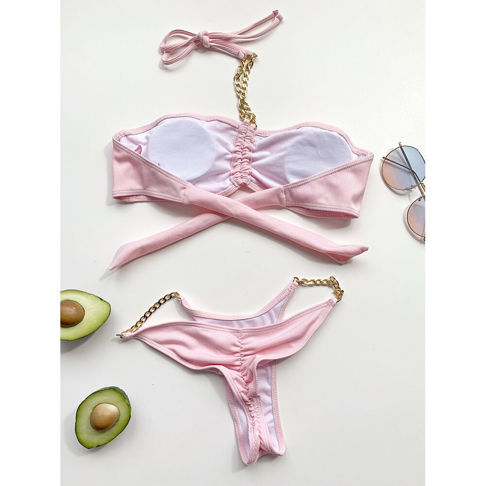 送料無料 2021セクシーチェーンビキニ水着女性バンドープッシュアップ水着2ピースビキニセット入浴水着ビーチウェア AE36655518012180291