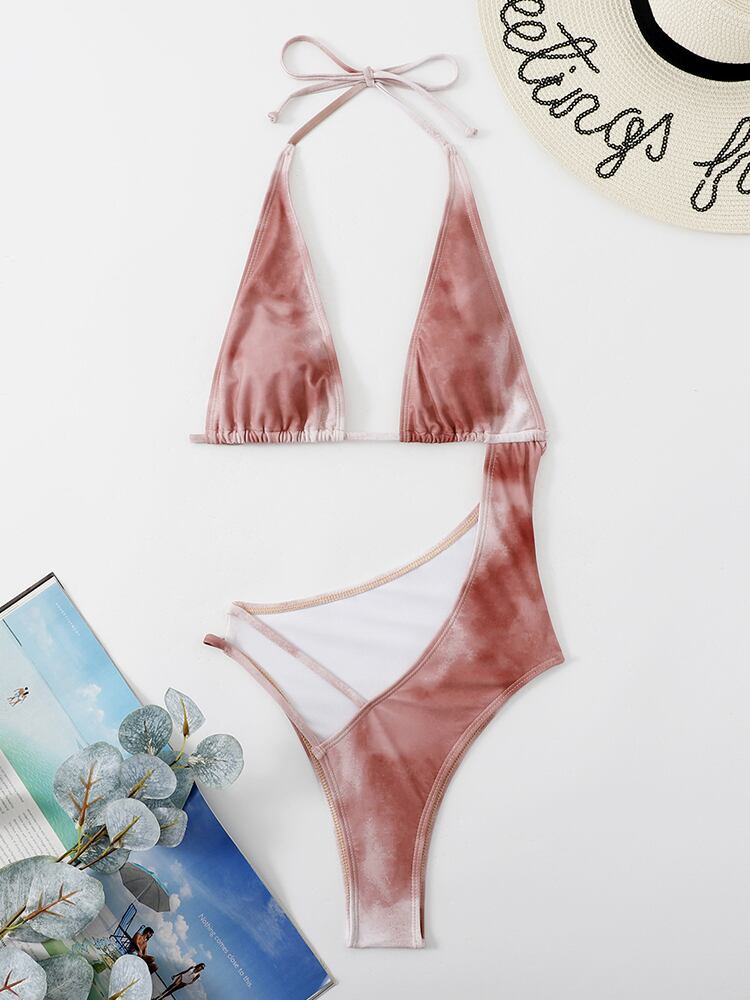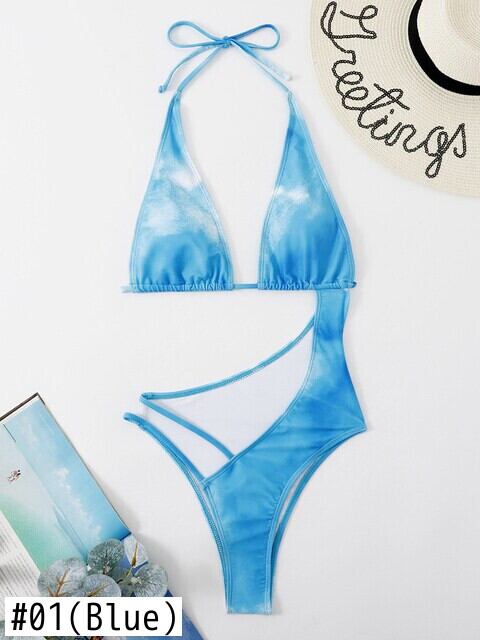 送料無料 2022セクシーな中空のワンピース水着女性絞り染めプリント水着ウエスト水着背中の開いたモノキニビーチウェア AE36655528878110457