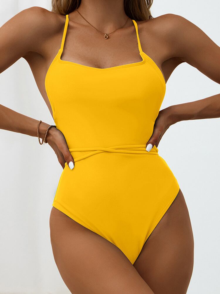 送料無料 2022セクシーなソリッドワンピース水着女性バンデージバックレス水着プッシュアップモノキニ入浴水着サマービーチウェア 夏物 ソリッドカラー AE36655537605336480