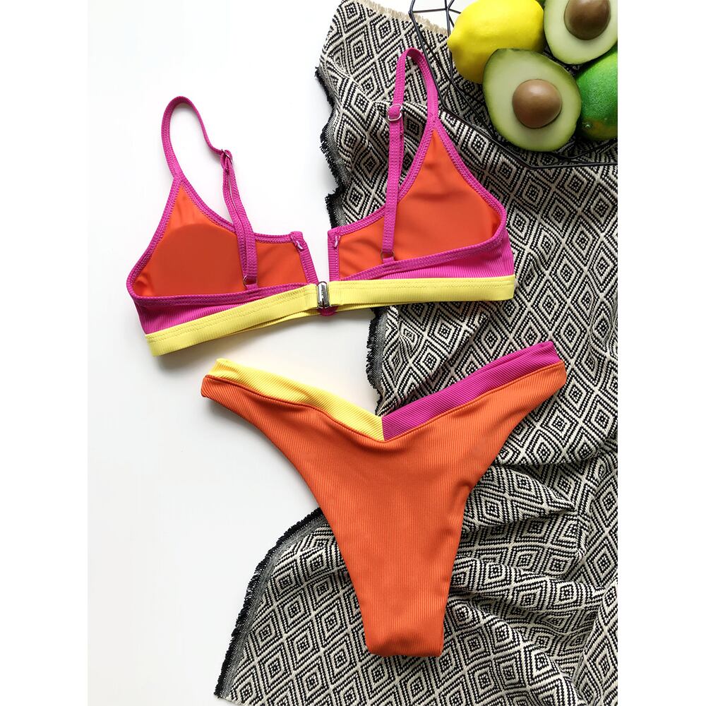 送料無料 2022セクシーなVネックビキニ女性水着プッシュアップ水着パッチワークビキニセット入浴水着ビーチウェア水着 AE36655550058927650