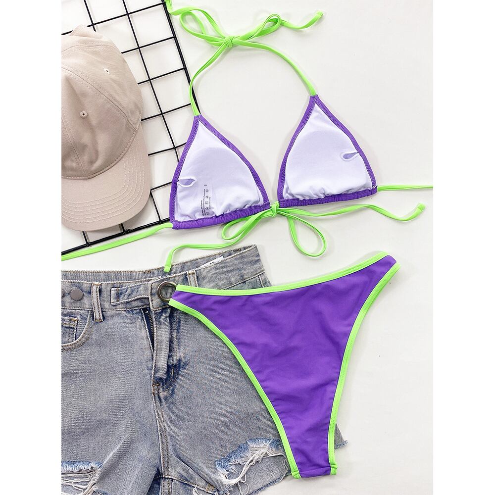 送料無料 2021セクシーホルタービキニ女性水着水着2ピースビキニセットパッチワーク水着サマービーチウェアスイム 夏物 AE36655532866554314