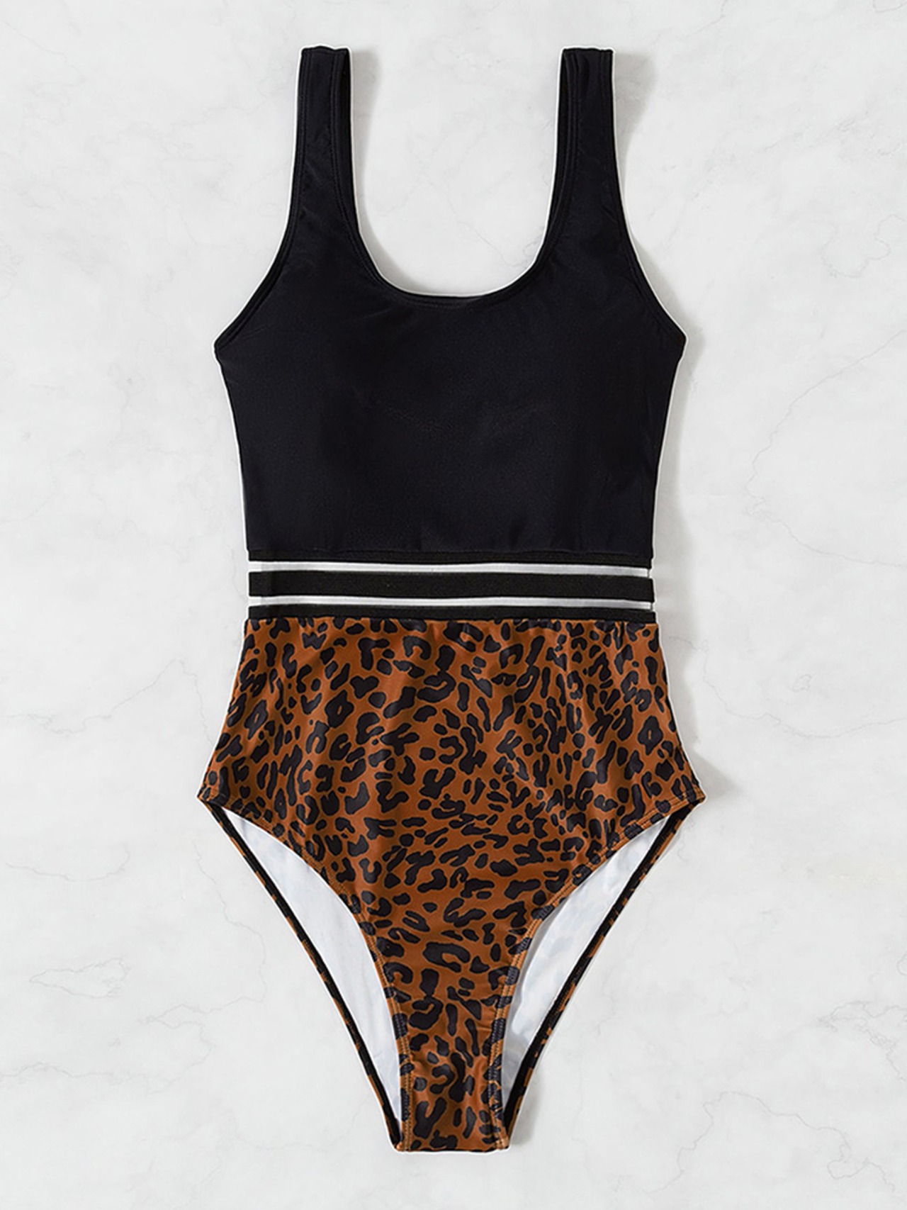 送料無料 2022セクシーなヒョウ柄水着女性メッシュパッチワークワンピース水着プッシュアップモノキニ水着ビーチウェア水泳 AE36655576576990280