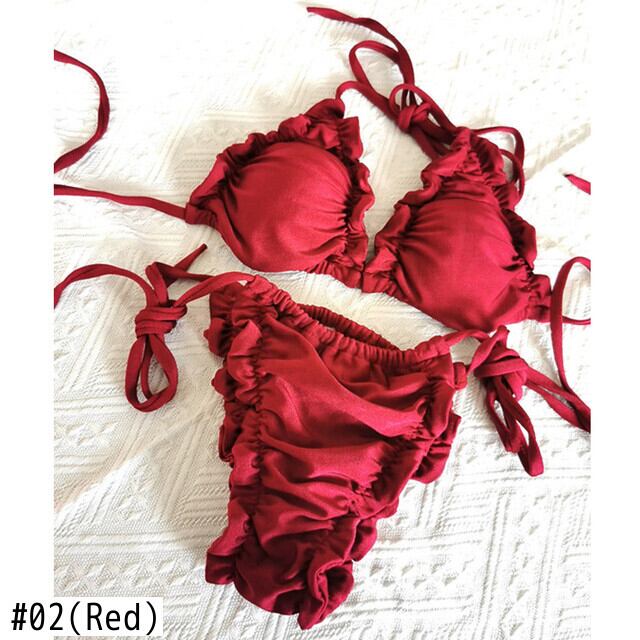 送料無料 セクシーなフリルプリーツビキニ2021ソリッド水着女性水着ホルターストラップビキニセット入浴者水着ビーチウェア ソリッドカラー AE36655524463783625