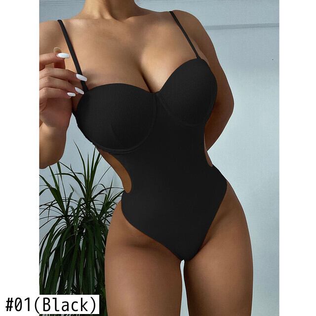 送料無料 セクシーなプッシュアップ水着女性ワンピース水着背中の開いたモノキニアンダーワイヤードブラカップ水着サマービーチウェアスイム レッド 夏物 AE36655597204371812